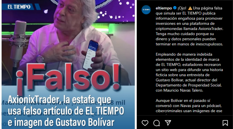 Colombia: Señalan a scam de criptomonedas “AxionixTrader” por utilizar imagen de un político