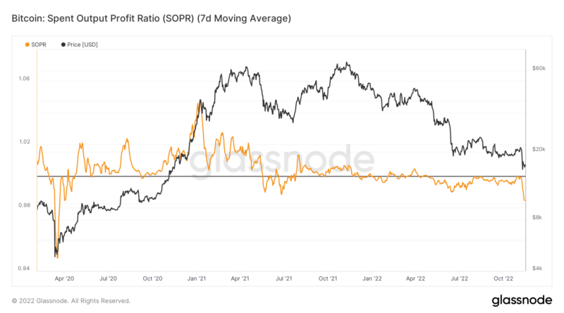 Las pérdidas de BTC se hacen reales mientras la métrica SOPR alcanza el mínimo desde marzo de 2020