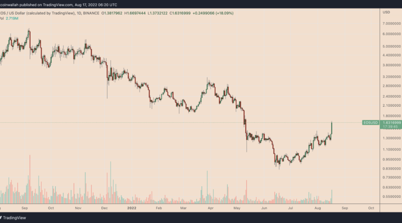 Leer másEl precio de EOS subió aproximadamente un 20% hasta alcanzar los USD 1.66 el 17 de agosto y estaba en camino de