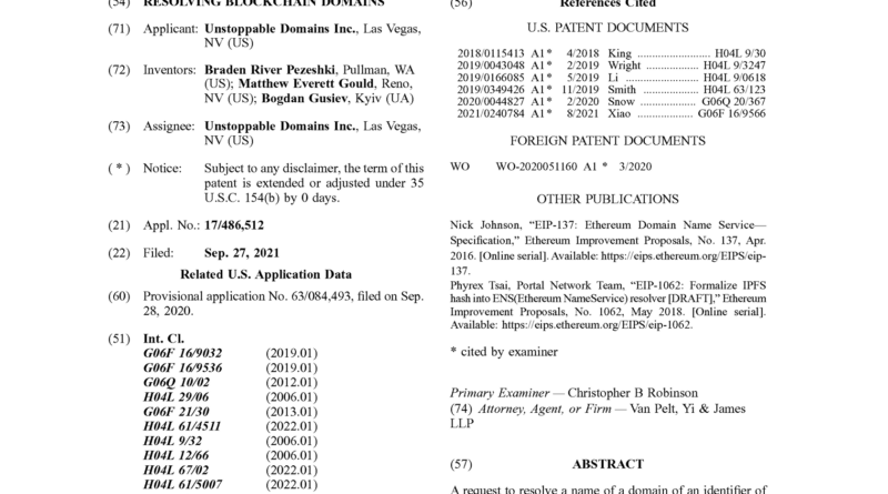 Leer másEl fundador y principal desarrollador de Ethereum Name Service (ENS), Nick Johnson, insta a la empresa de dominios blockchain Unstoppable