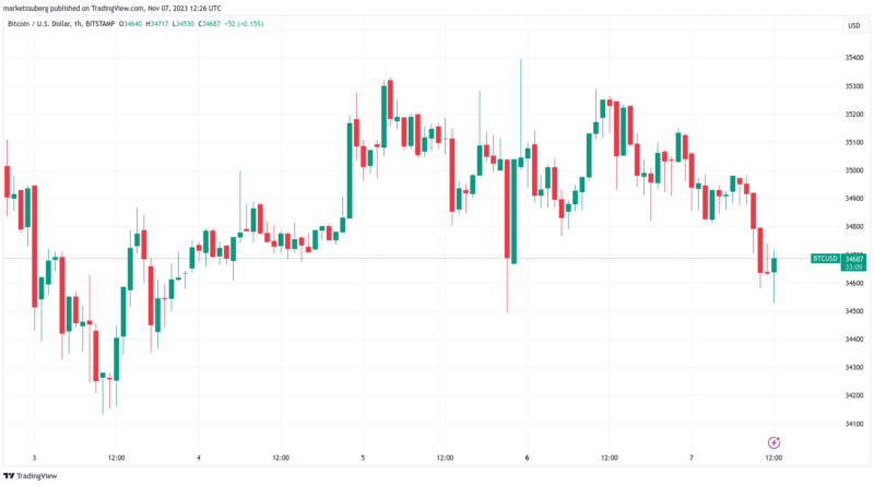 Leer másBitcoin (BTC) cayó hacia los USD 34,500 el 7 de noviembre, mientras la atención de los analistas se centraba en