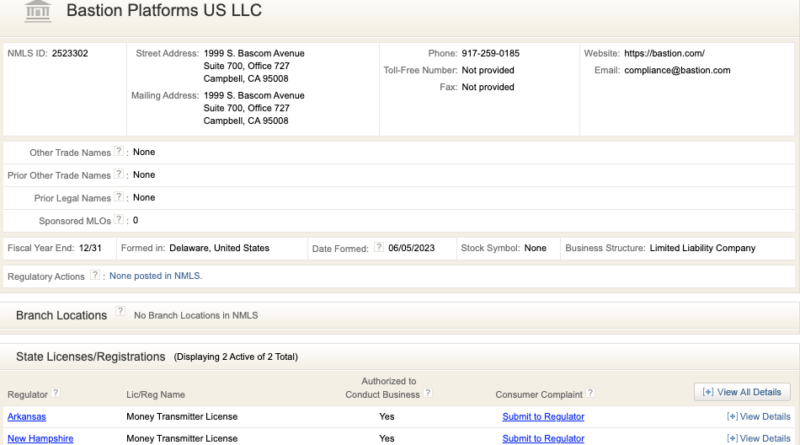 Leer másBastion, una nueva startup de criptomonedas creada por ex ejecutivos de Andreessen Horowitz (a16z), ha obtenido dos Licencias de Transmisor