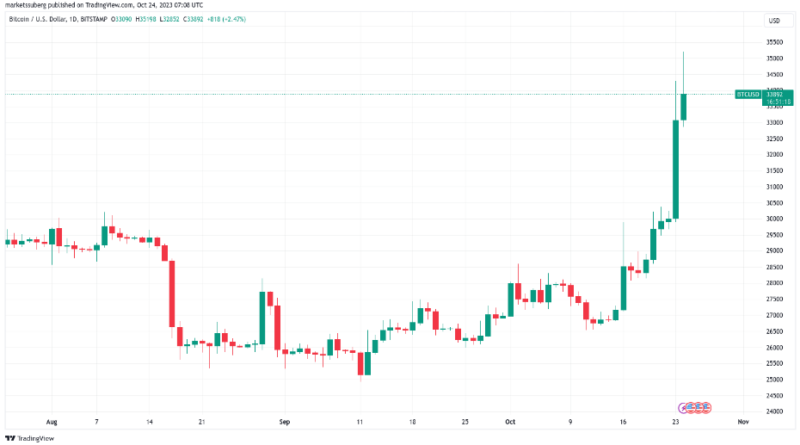 El sentiment del criptomercado alcanza su punto más alto desde el máximo histórico de BTC de USD 69,000