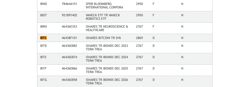 Leer másEl ticker del fondo cotizado en bolsa (ETF) de Bitcoin al contado (BTC) de BlackRock, IBTC, ha vuelto a aparecer