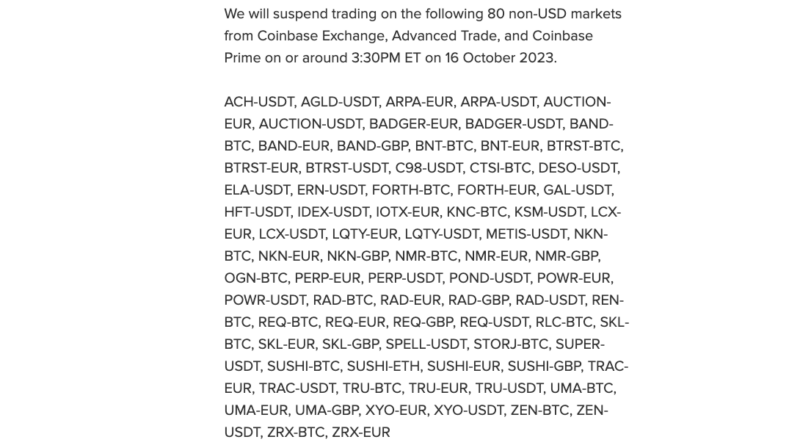 Leer másEl exchange de criptomonedas Coinbase, con sede en Estados Unidos, está eliminando decenas de pares de negociación para mejorar la