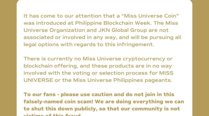 Leer másLa Organización Miss Universo ha negado cualquier asociación con el proyecto Miss Universe Coin anunciado en el evento Philippine Blockchain