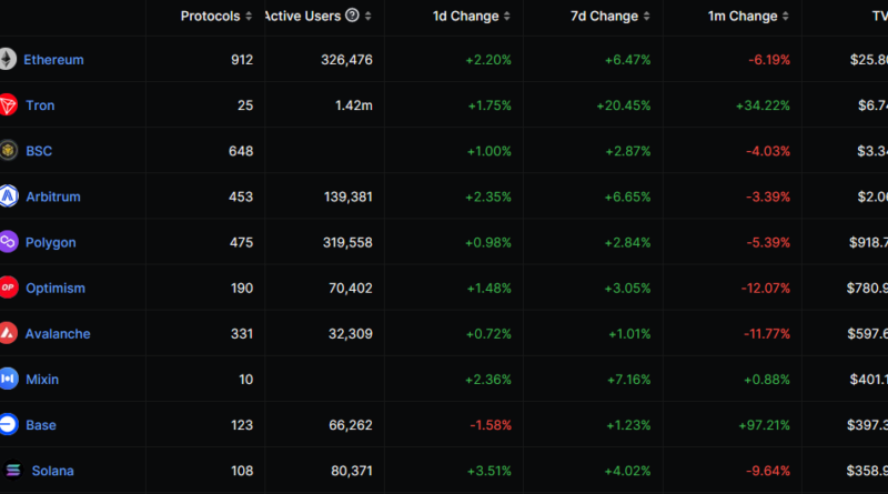 Valor total bloqueado de la red Base se acerca a USD 400 millones, superando a Solana