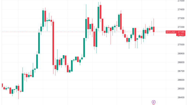 Precio de Bitcoin alcanza el nivel de USD 27.000 como soporte y la Fed mantiene los tipos de interés iguales