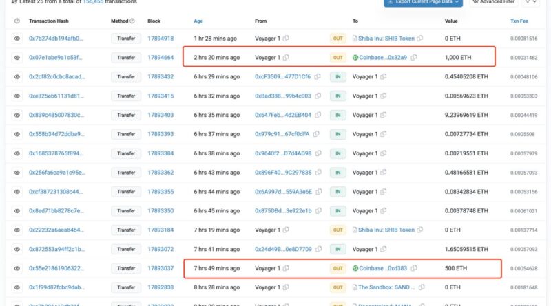 Leer másEl prestamista de criptomonedas en quiebra Voyager Digital transfirió 1,500 Ether (ETH), por valor de unos 2.77 millones de dólares,