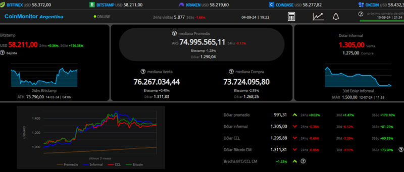 Leer másEl portal Coinmonitor.info en Argentina muestra que para el pasado 4 de septiembre, en promedio, el precio de bitcoin se