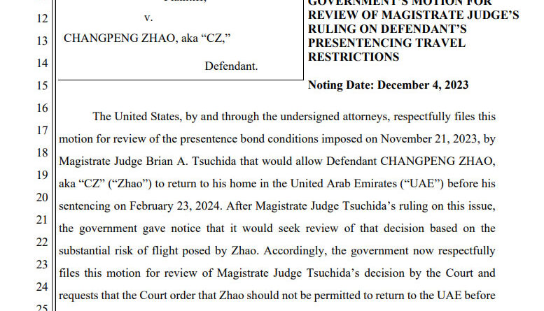 Leer másLos fiscales del Gobierno de Estados Unidos están tratando de impedir que el antiguo jefe de Binance, Changpeng “CZ” Zhao,