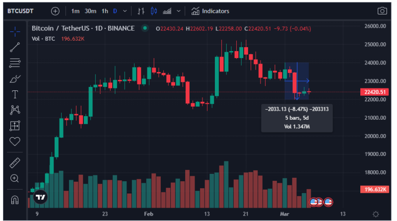 Bitcoin, el principal activo criptográfico de la industria, ha iniciado un mes de marzo con fuertes retos, las bandas de