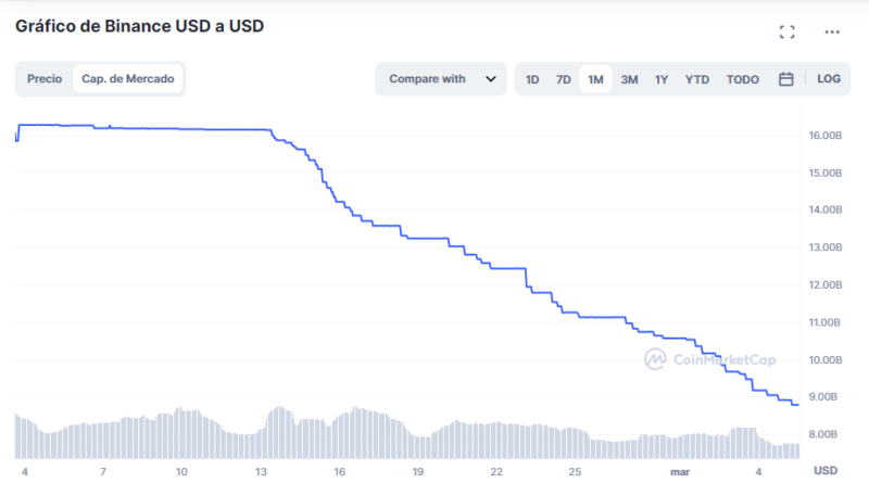 Leer másBUSD, la stablecoin de Binance correlacionada al dólar, ha caído estrepitosamente en relación a su capitalización de mercado desde el