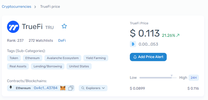 Leer másCriptorank, una plataforma web que recopila y muestra datos de las principales criptomonedas del mercado, muestra que TrueFi es el