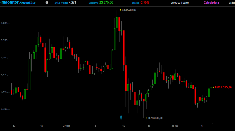 Se contrae el precio de bitcoin en Argentina, y baja a los 8.5 millones de pesos en promedio