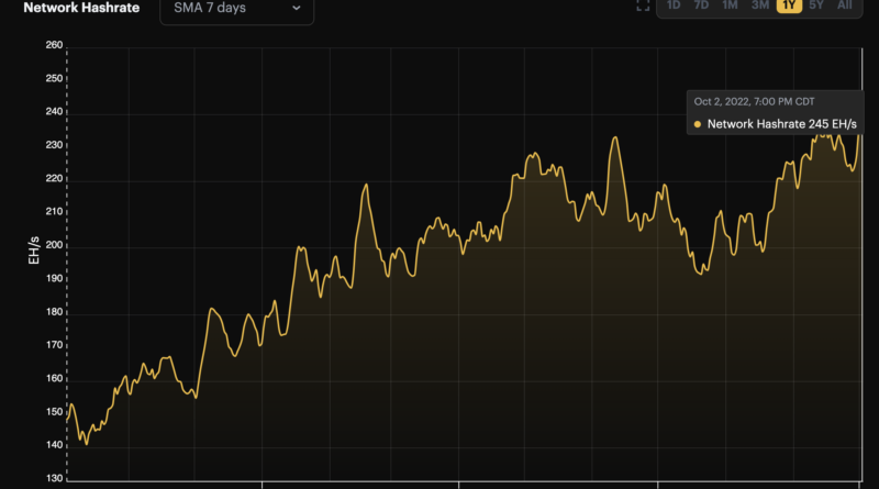 Leer másLa tasa de hash de Bitcoin alcanzó un nuevo máximo histórico por encima de 245 EH/s el 3 de octubre,