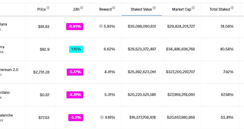 Leer másSegún los datos de Staking Rewards, Terra (LUNA) ha superado a Ether (ETH) en términos de valor en staking; LUNA cuenta