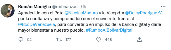 Leer másEl gobierno de Nicolas Maduro en Venezuela ha nombrado como presidente del banco más grande de Venezuela a Román Maniglia.