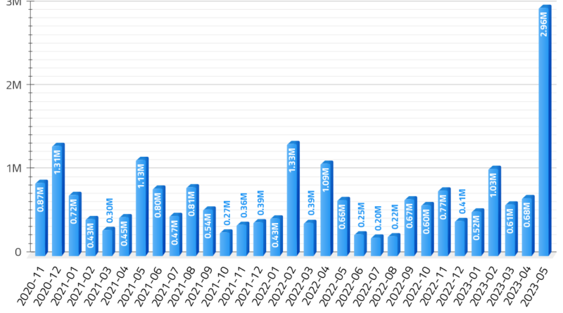 Leer másLa cantidad de Ether (ETH) puesta en stake en mayo alcanzó un nuevo máximo histórico de 2.96 millones de ETH,