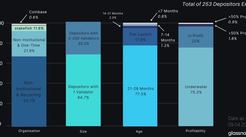 Leer másGlassnode ha pronosticado que sólo 170,000 Ether (ETH) del total de 18,1 millones de ETH staked en la Beacon Chain se desbloquearán