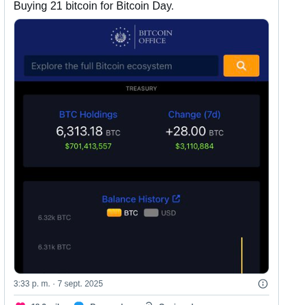 Leer másEl Salvador acumula actualmente 6,313 BTC a cuatro años de la entrada en vigor de la Ley Bitcoin, conmemorados con