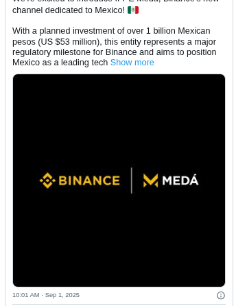 Leer másBinance ha lanzado Medá, una Institución de Fondos de Pago Electrónico con licencia en México. La nueva entidad operará de
