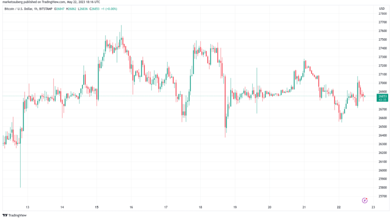 Leer másEl precio de Bitcoin (BTC) se estabilizó cerca de los USD 27,000 desde el 13 de mayo, mostrando una volatilidad