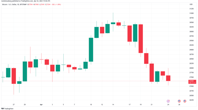 Bitcoin (BTC) se dirigió hacia mínimos del rango en la apertura de Wall Street del 24 de abril con los
