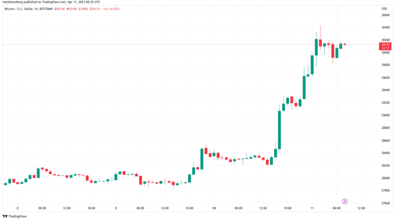 Leer másBitcoin (BTC) mantuvo los USD 30,000 como soporte antes de la apertura de Wall Street del 11 de abril, pero