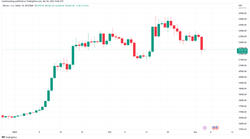 Leer másBitcoin (BTC) cotizaba alrededor de USD 22,400 en la apertura de Wall Street del 3 de marzo, mientras que los