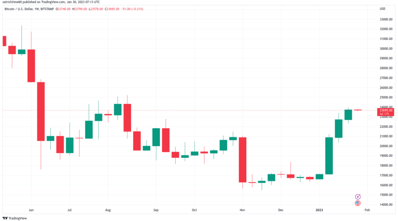 Leer másBitcoin (BTC) rondó los USD 23,000 el 1 de febrero, tras registrar su mejor rendimiento de enero en diez años.
